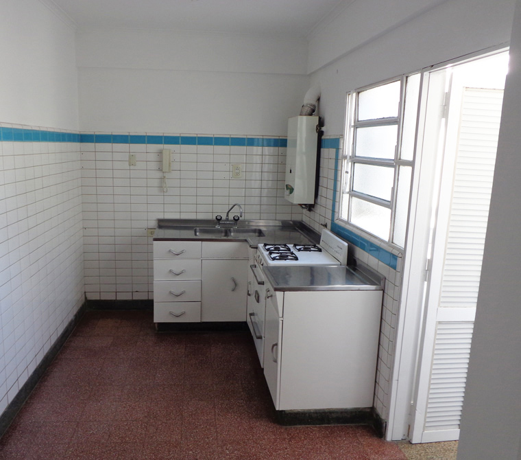 1 dormitorio con placard, living (chico), cocina-comedor diario, baño y galería con lavadero. Segundo piso de escalera. Interno. Luminoso